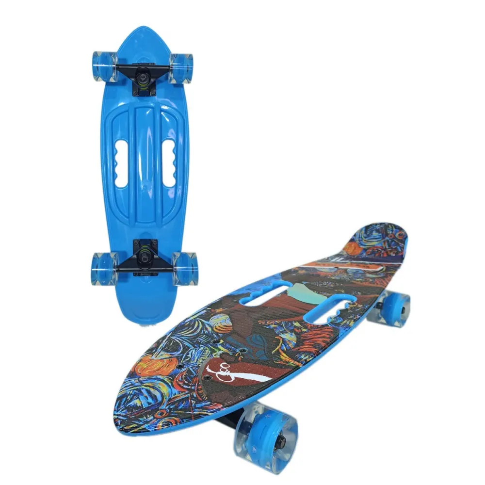 Колесная часть изготовлена из высокопрочного материала, созданного для профессионального круизинга. Мягкость хода делает езду комфортной даже на неровностях. Модель рассчитана на детскую аудиторию с максимальным весом до 100 кг. С такими характеристиками познать возможности доски может подросток и даже взрослый родитель. Легкий вес, компактные эргономичные размеры допускают самостоятельной транспортирование скейтборда в нужнее место.