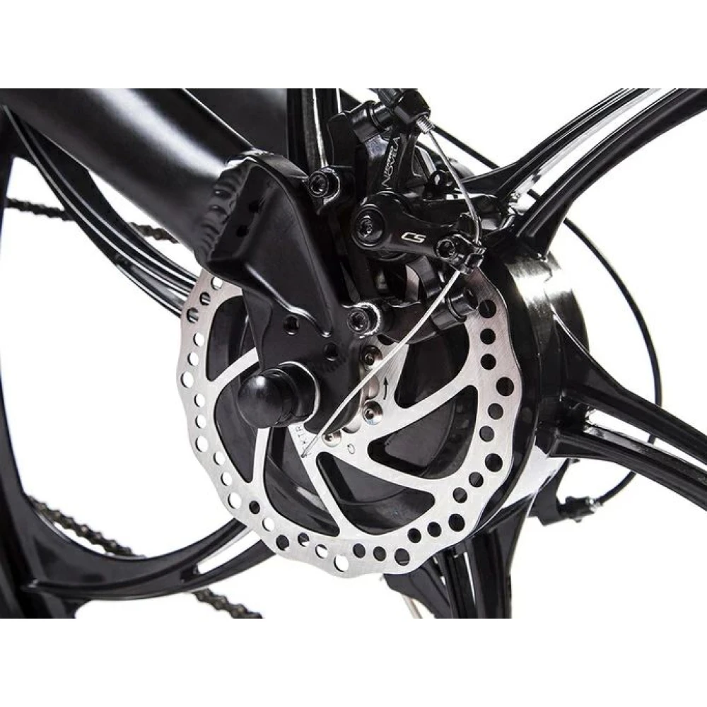 Скоростные характеристики (35 км/час) и максимальный пробег до 50 км достигается благодаря мощному электродвигателю (500 Вт) и емкому аккумулятору (10А*ч), время полной зарядки которого составляет 5-6 часов. 6-скоростная трансмиссия переключается с помощью половинчатой ручки, дает возможность самостоятельного выбора режима.