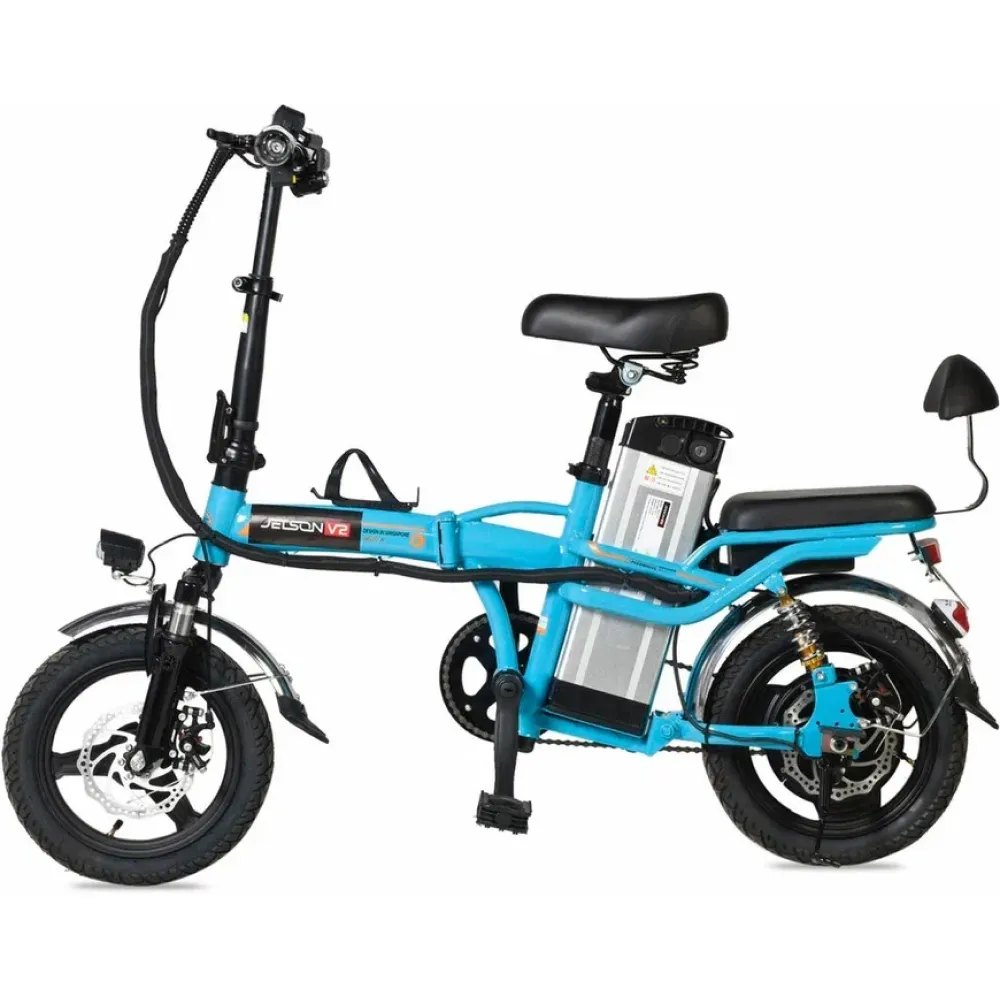 Электровелосипед Jetson V2 350W (48V/12Ah) Голубой – хит этого сезона. Эстетически привлекательный, качественный и надежный электровелосипед понравился всем без исключения. Техника создана для подрастающего поколения и взрослых пользователей весом до 120 кг. Оснащена пассажирским сиденьем со спинкой и вместительной корзиной, кардинально меняющим предназначение. Электровелосипед может использоваться в качестве ежедневной техники и прогулочной модели. Купить технику по демократичной стоимости, воспользоваться бесплатной консультацией предлагает наш интернет-магазин.