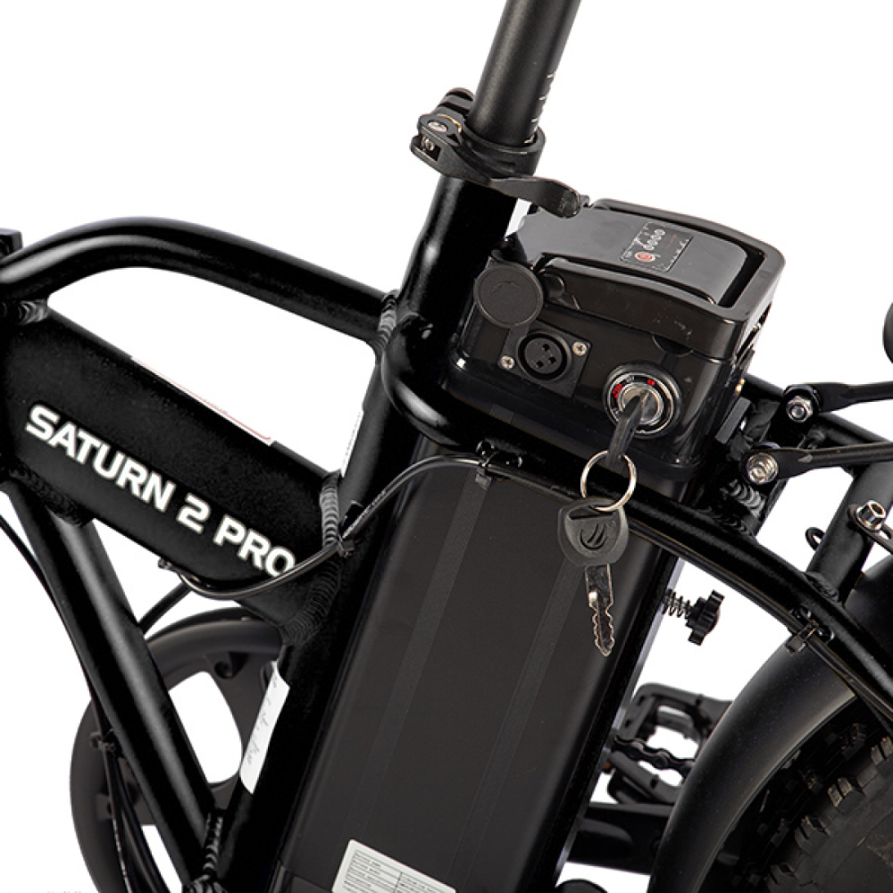Saturn 2 PRO — это электровелосипед, который легко взять с собой в багажник, лифт или офис. Складная рама и рулевая колонка превращают мощного двухколёсного монстра в компактный агрегат.