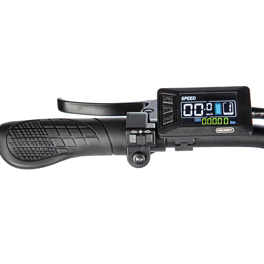 • Информативный LCD-дисплей показывает скорость, заряд, пройденное расстояние и уровень помощи мотора.