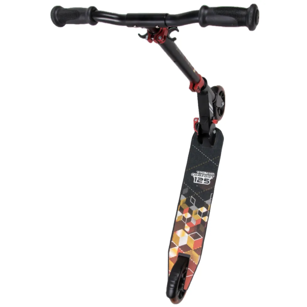 Самокат Tech Team Comfort 125R, черно-красного цвета – новая современная модель на отечественном рынке продаж. Яркий и стильный дизайн моментально приковывает взгляды окружающих. Техника идеально подойдет для юных пользователей, научит уверенно стоять на двух колесах и принимать первые самостоятельные решения. Самокат рассчитан на спокойные поездки по городским скверам и парковым аллеям. Получить персональную скидку, ознакомиться с широким ассортиментом доступного товара и стать постоянным клиентом предлагает наш интернет-магазин.