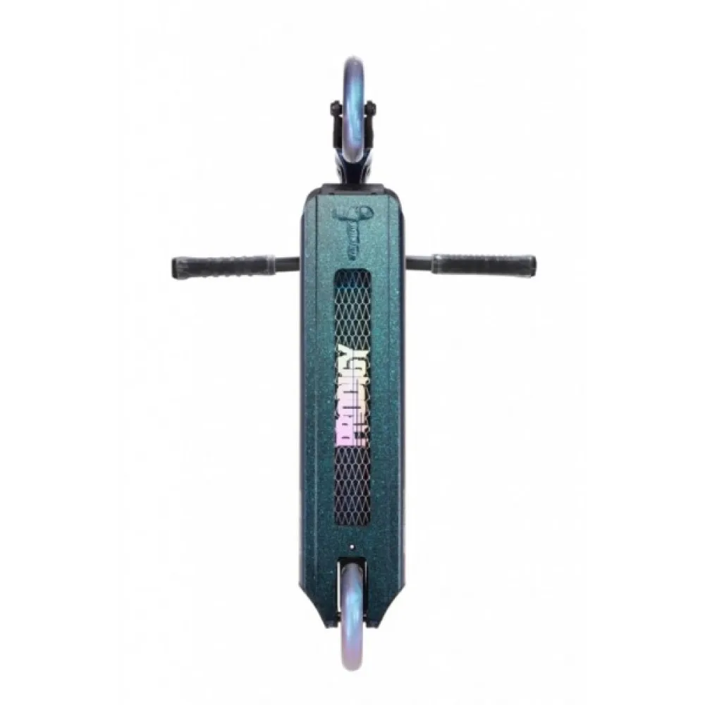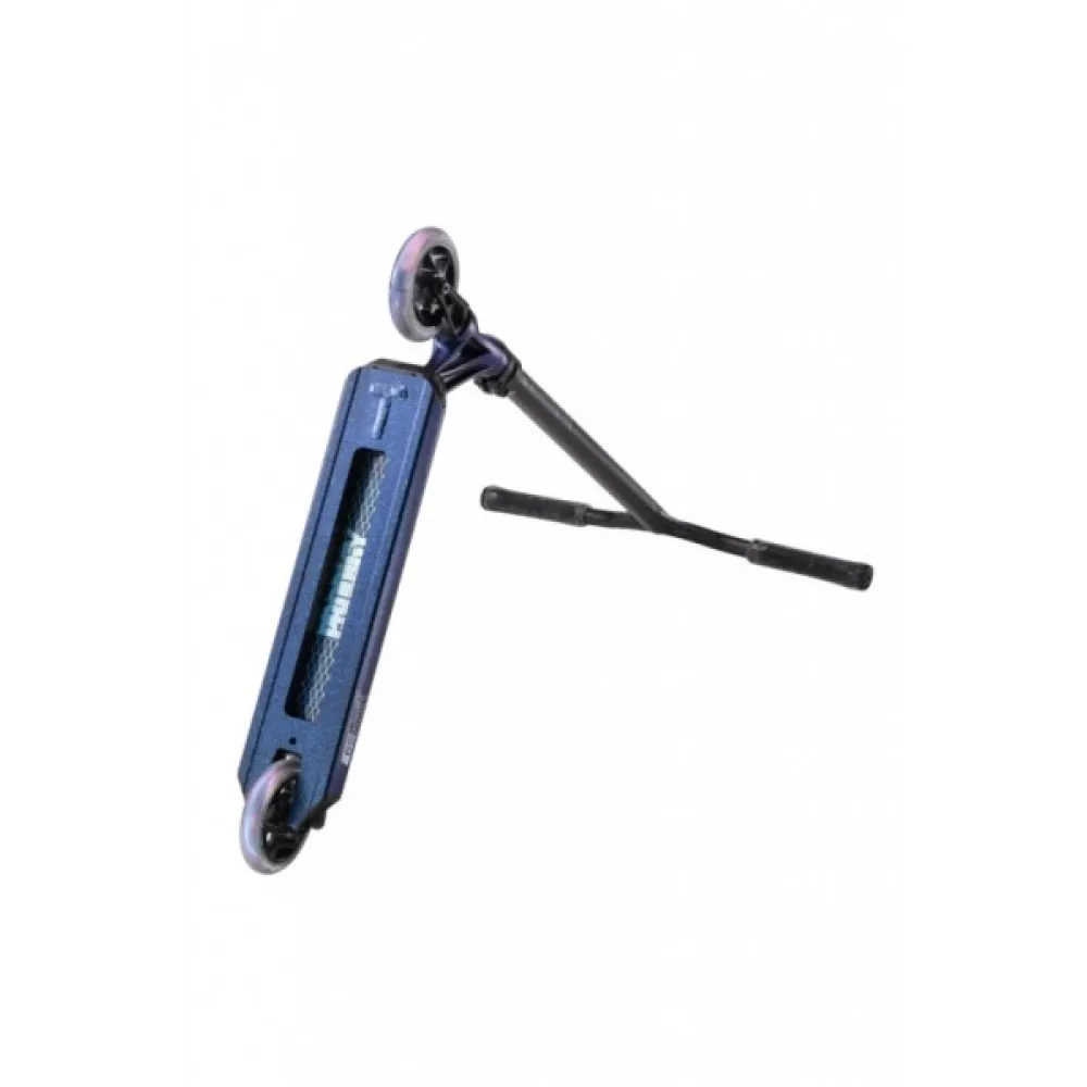 Трюковой самокат BLUNT COMPLETE PRODIGY S9 Galaxy – яркая брендовая техника для клиентов продвинутого уровня порадовала современной технической оснащенностью и максимальными параметрами удобства. Модель сравнительно легкая для фристайла. Вес алюминиевой конструкции составляет 3,5 кг. При этом максимальная грузоподъемность рассчитана на взрослых пользователей.
