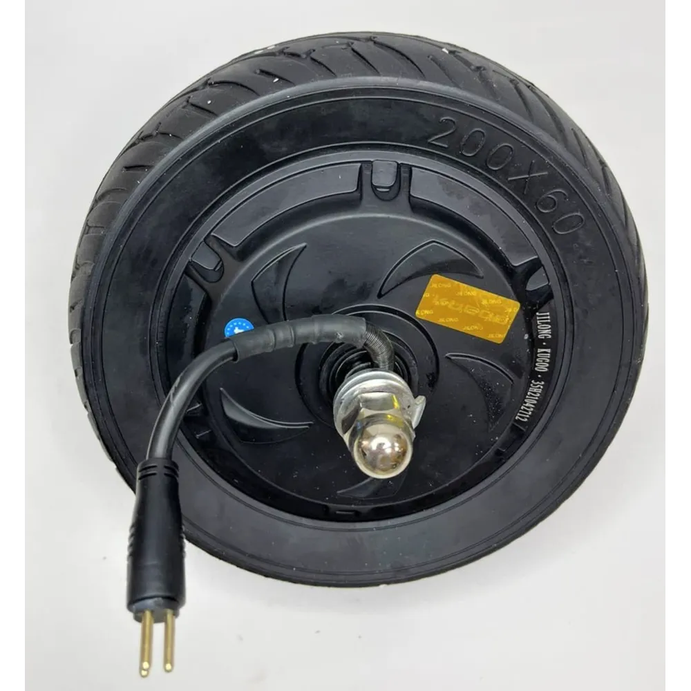 Мотор - колесо, важнейшая и необходимая для езды часть электросамоката. Данное колесо имеет мощность 600 Вт, напряжение 48 Вольт. Выполнено из прочной резины, в чёрном цвете. Мотор-колесо обеспечит максимальную бесшумность и увеличит коэффициент полезного действия электросамоката.
